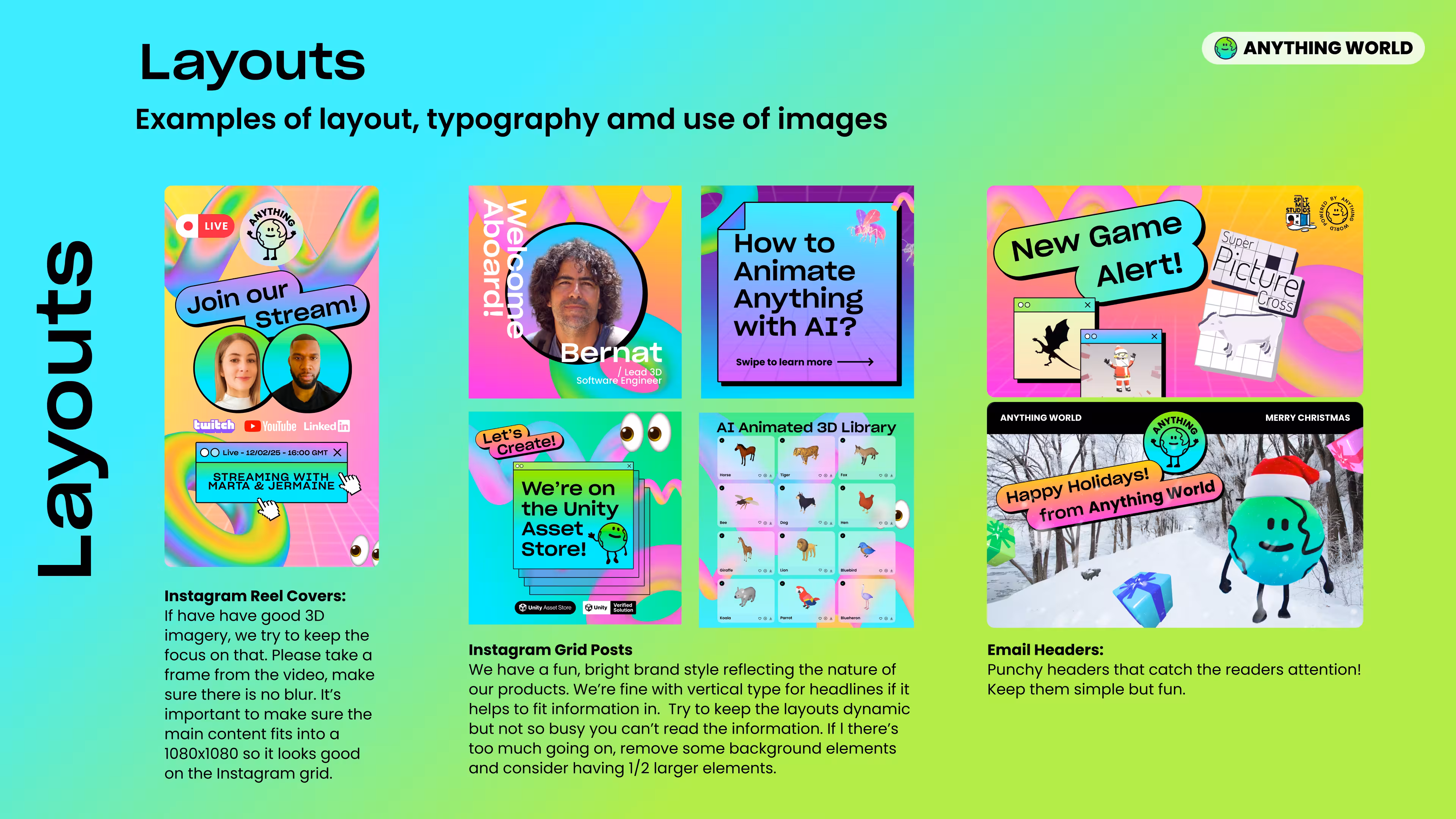 In a sea of cold, corporate AI brands, Anything World bursts through with warmth, colour, and personality. By putting creativity and fun at the heart of the brand, we’ve positioned Anything World as a true game-changer, redefining what an AI tech company can look and feel like.